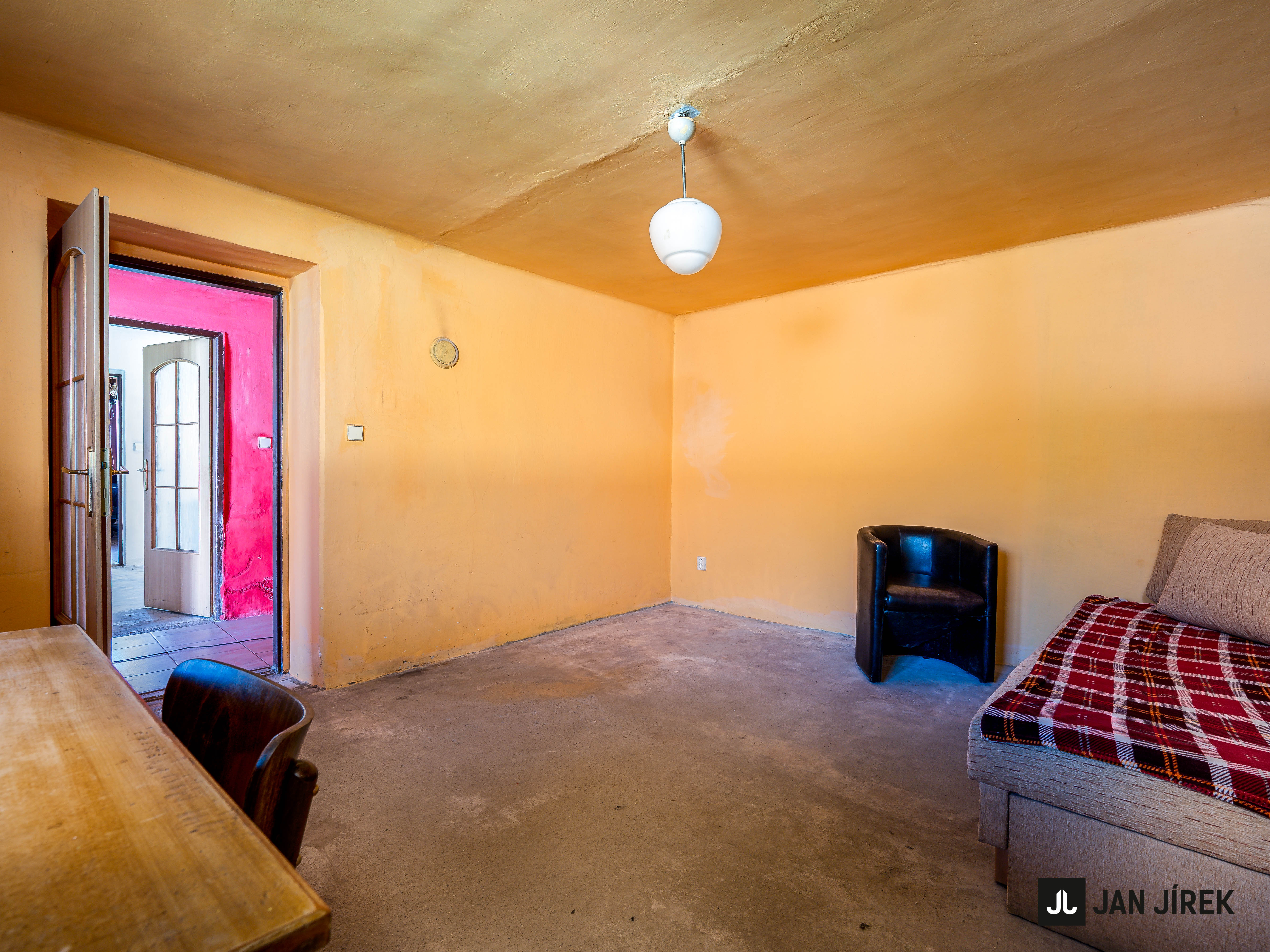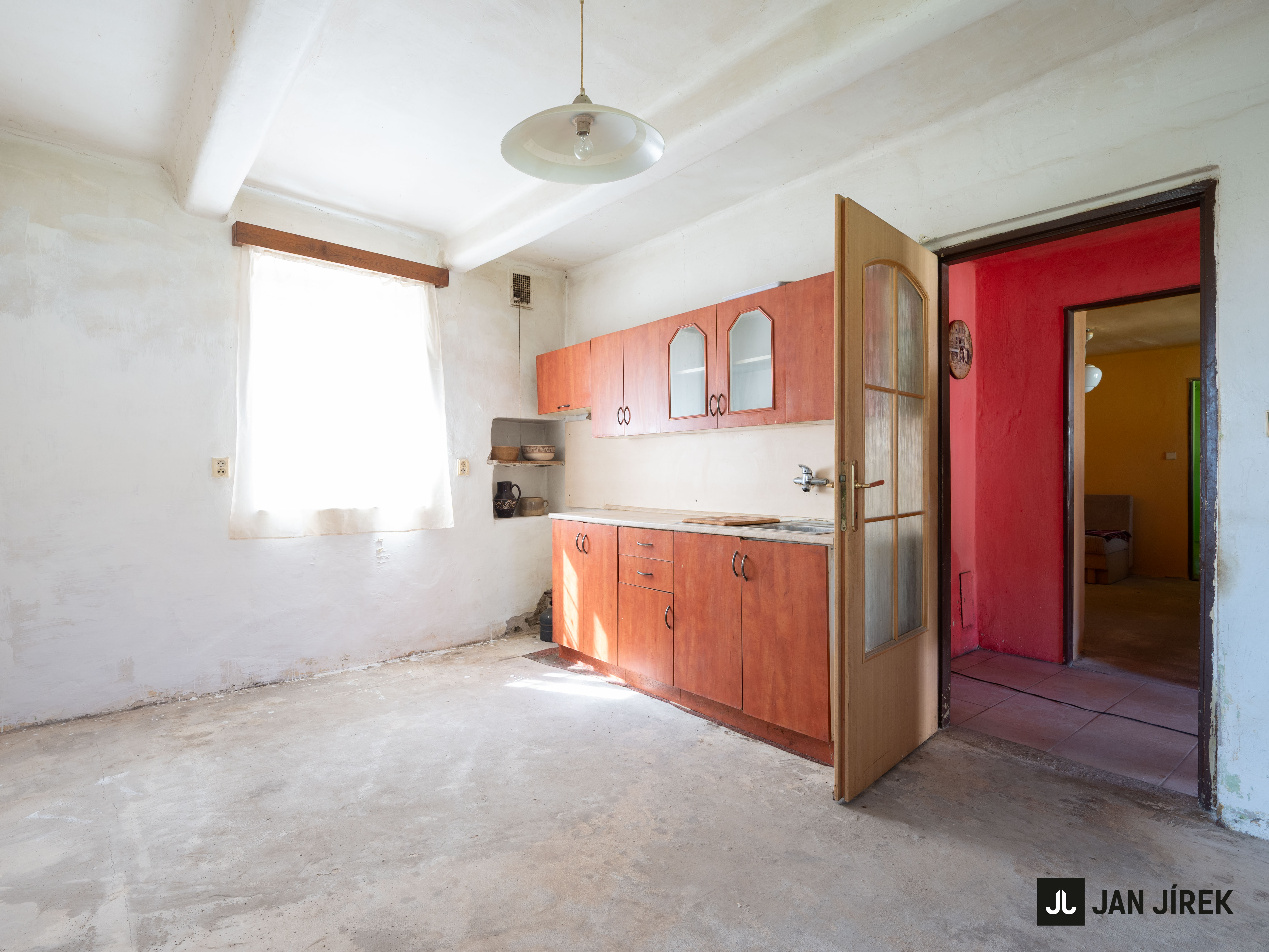 Dům nabízí tři pokoje, které jsou průchozí, je to typický vesnický kočkopes.