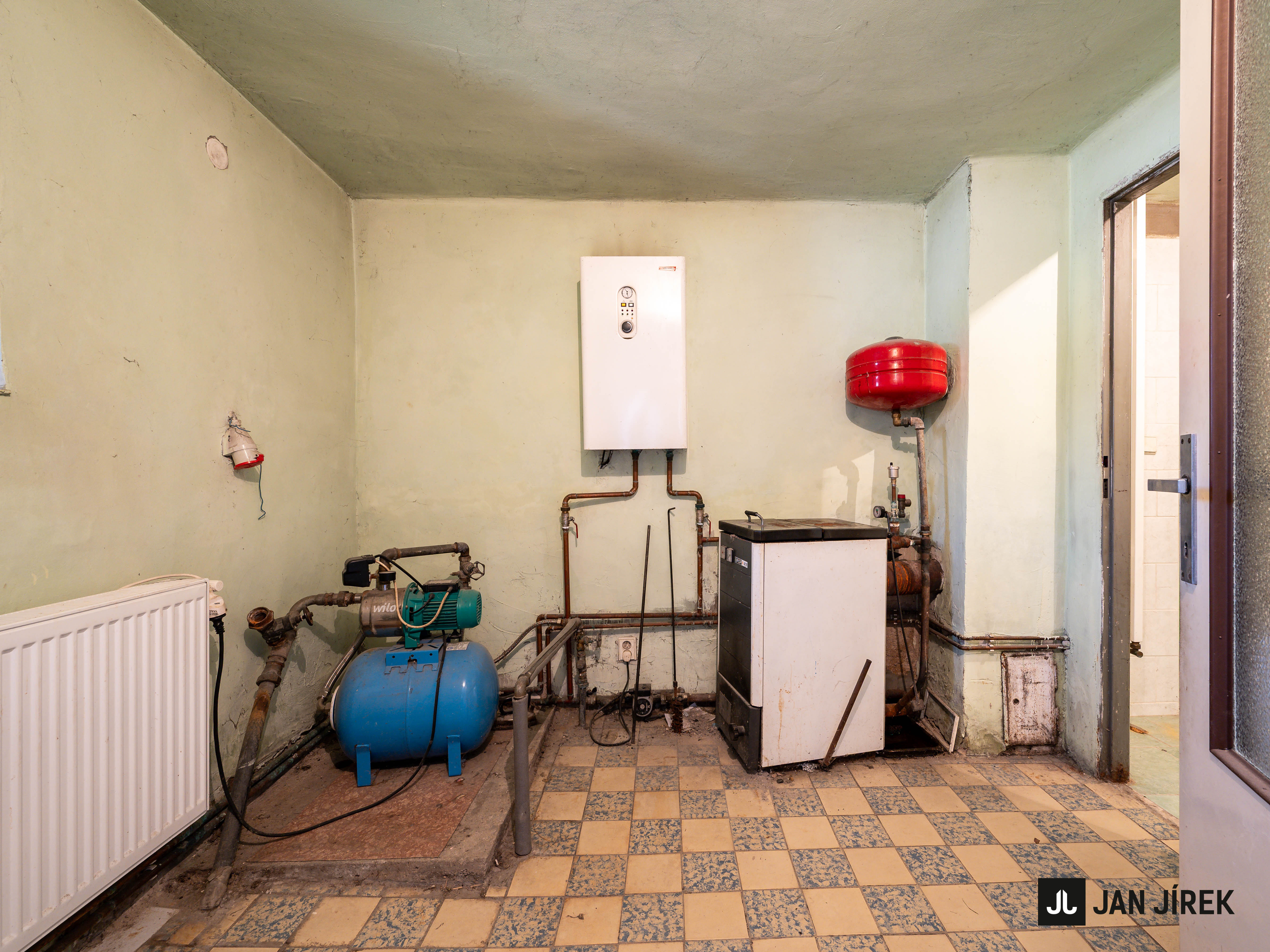 Vytápění je zajištěno dvěma kotli – elektrickým a kotlem na tuhá paliva, což umožňuje flexibilitu provozu podle vašich preferencí. Ohřev vody je zajištěn bojlerem.